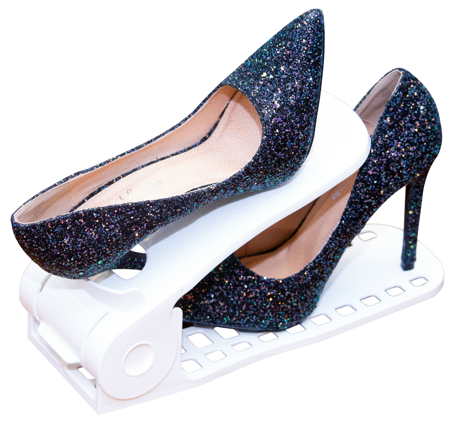 • ADJUSTABLE HEIGHTS: 4 height adjustable locking positions for storage of sneaker, high heel, stiletto, sandal, wedge, flip flop As Seen On TV